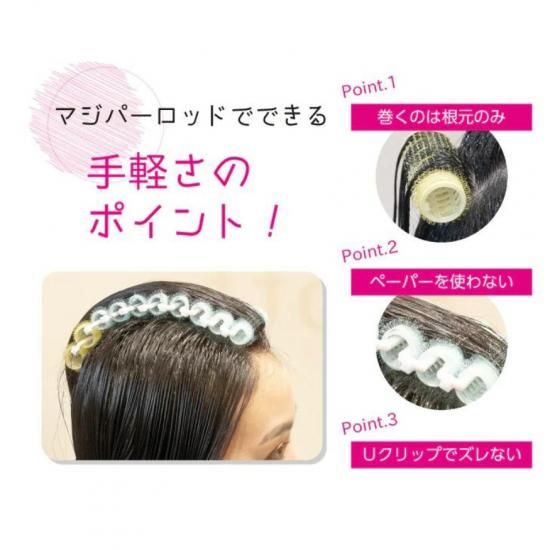 マジックテープ箇所が髪をしっかりキャッチし、髪をホールド。カンタン手軽に根元を立ち上げるマジパーロッド。トップ部分に巻くだけで顔周りにふわっとしたボリュームが生まれ、ひし形シルエットに近づけます。