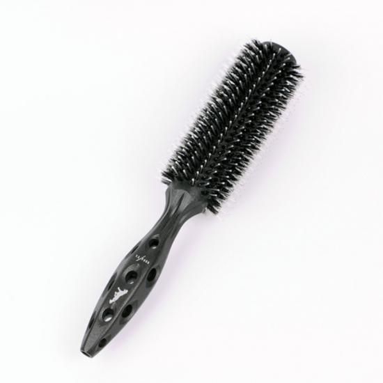 髪に驚くほどのツヤを与え高テンションがきくロールブラシ 取っ手の部分が樽型6角になっており、ブラシの回転が楽にできます。ハンドル部の穴が握りやすく手汗を乾かし滑りません。静電気防止の天然木+カーボンを使用しています。
