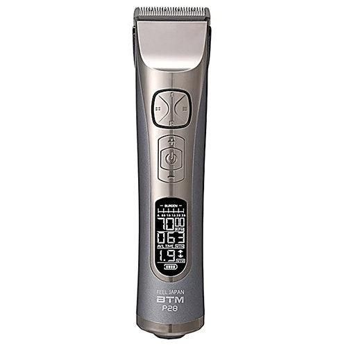 刈り高調整をボタン一つで自動調整する機能、7000RPMターボ搭載など最新のシステムを搭載した最高級モデル。 RPM CONTROL SYSTEMBTM P28は髪の量を感じてスピードをコントロールするだけではなく、バッテリーの残量に関係なく回転数を一定に保つRPMコントロールシステムを搭載しています。 マックススピード / 7000RPMBTM P28は髪質やシーンに合わせ5000回転/分 7000回転/分をボタン一つで4段階に調節出来る最新式のクリッパーです。 負荷をディスプレイ表示BTM P28はクリッパーに対しての負荷状態をディスプレイで確認出来ます。オイル切れやお掃除が必要な場合は負荷レベル表示でお知らせします。