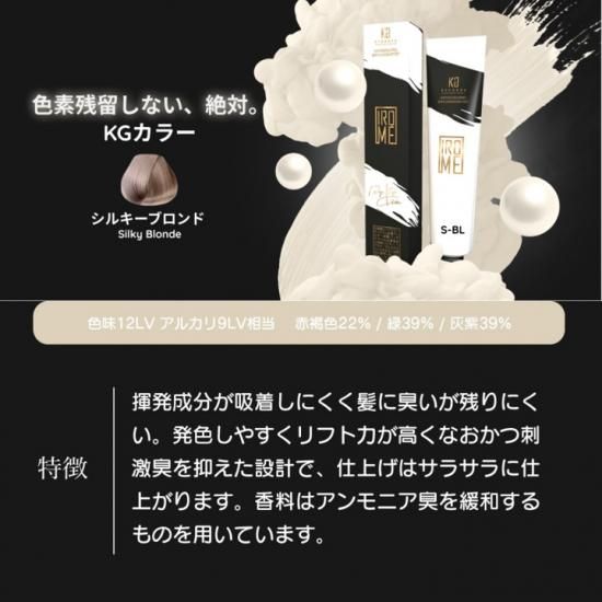 【シルクのような透明感】 揮発成分が吸着しにくく髪に臭いが残りにくい。発色しやすくリフト力が高くなおかつ刺激臭を抑えた設計で、サラサラに仕上がります。 香料はアンモニア臭を緩和するものを用いています。