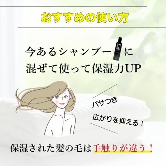 1.直接頭皮に付けて、薄毛・枝毛の悩みがある方に。 2.髪のパサつきが気になるときは直接パウダーを揉みこみます。 3.パウダーをトリートメントと混ぜて、15秒以上放置して洗い流す。 4.前処理や後処理として、水50mlに一袋希釈して使う。 5.ダメージ緩和剤として、カラー剤、ブリーチ、矯正剤、パーマ剤と一緒に使う。