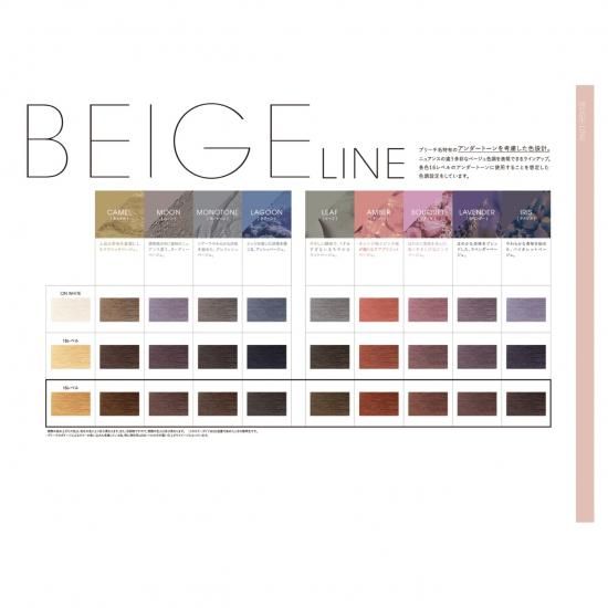 ブリーチオンカラーを次のステージへ。 とろりとしたジェルベースで、ハイトーンの髪への幅広い発色を叶えながら、みずみずしくツヤめくような《水光感》を纏わせていく。 遊びゴコロとキレイを両立させるブランド、IROJIKAKE。 BEIGE LINE ブリーチ毛特有のアンダートーンを考慮した色設計。 ニュアンスの違う多彩なベージュ色調を表現できるラインアップ。 各色16レベルのアンダートーンに使用することを想定した色調設定をしています。 MOON[ムーン] 透明感の中に紫味のニュアンス漂う、ヌーディーベージュ。